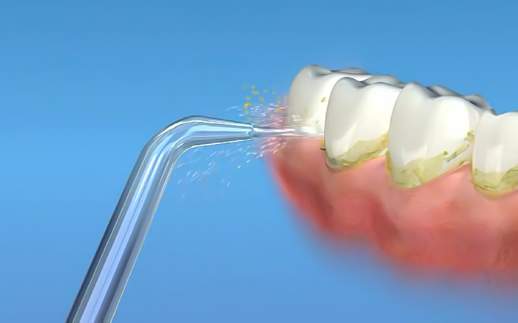 За счет пульсирующего потока воды улучшается кровоснабжение в деснах, очищаются промежутки между зубами, десневые бороздки и пришеечные участки зубов.