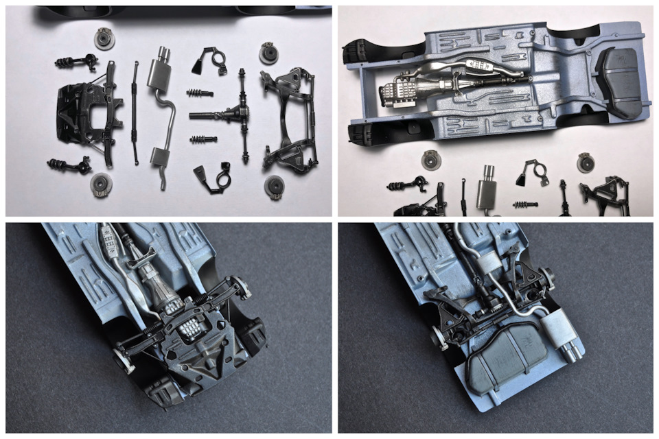 Покрасил детали подвески. Покрасил и попачкал днище, собрал вместе переднюю и задние подвески: