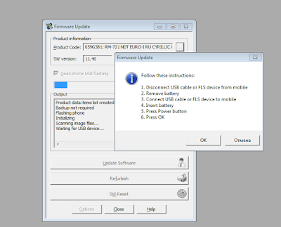 появится окошко и в этот самый момент подключаем выключенный телефон к компьютеру, должен определяться как Nokia USB Flashing Generic Nokia USB Flashing Parent и нажимаем Ок