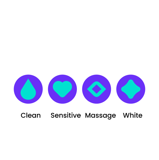 При включении вы увидите режим, в котором работает зубная щетка, интенсивность чистки и остаточный заряд батареи.