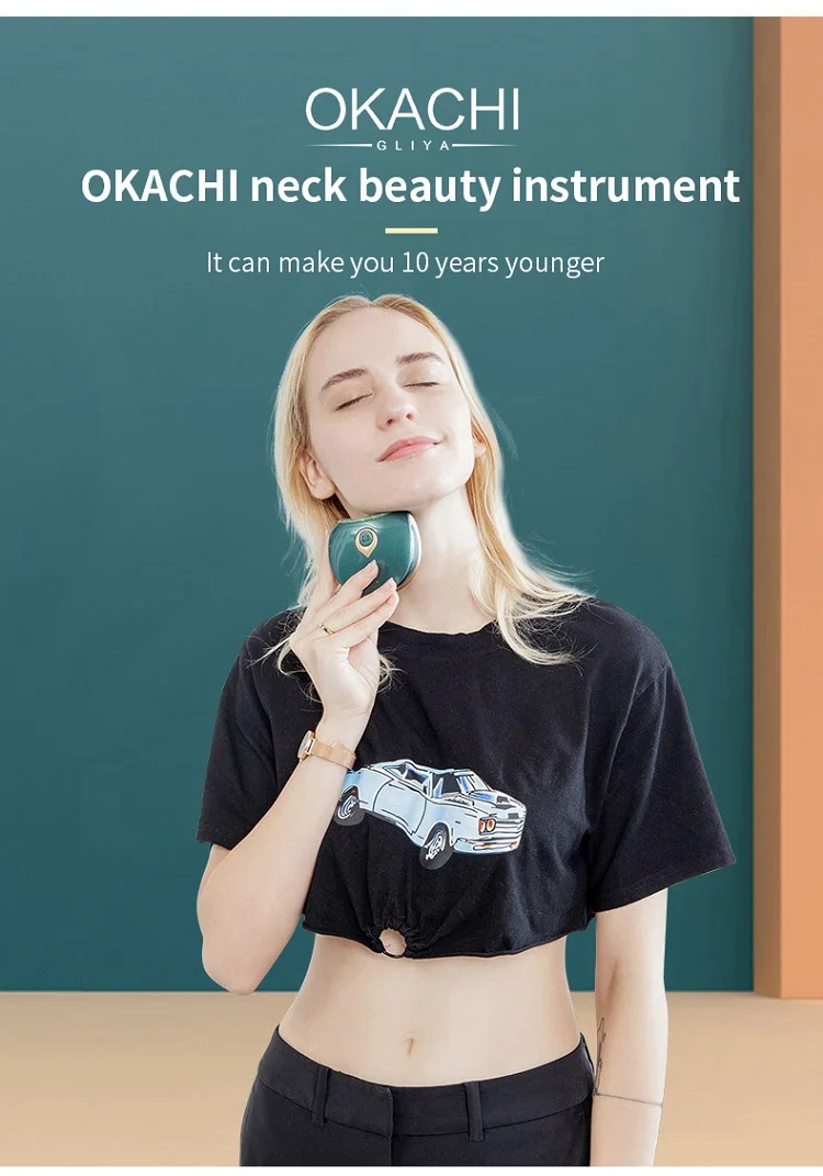 Массажер OKACHI GLIYA подтягивает вялые мышцы лица и тела, разглаживает мимические морщины, укрепляет кожу и повышает ее тонус, производит «безоперационный» лифтинг лица и шеи.