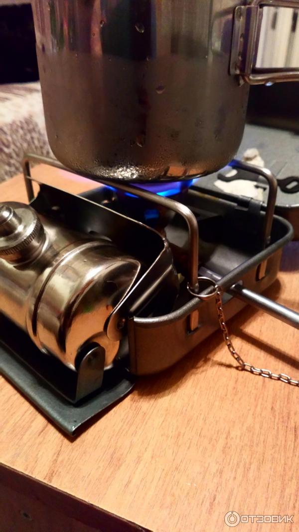 Из плюсов: ёмкость с бензом вообще не греется, в принципе. Отсюда отсутствие опасности взрыва. Гасится вся система мгновенно, безо всяких остаточных факелов. Достаточно сбросить давление в баке. В конце ролика есть этот момент. Всё сворачивается в кружку (кроме «бензобака»). Розжиг системы не требует прогрева бензобака для поднятия давления, шаманства с сухим спиртом, поливания бензином.