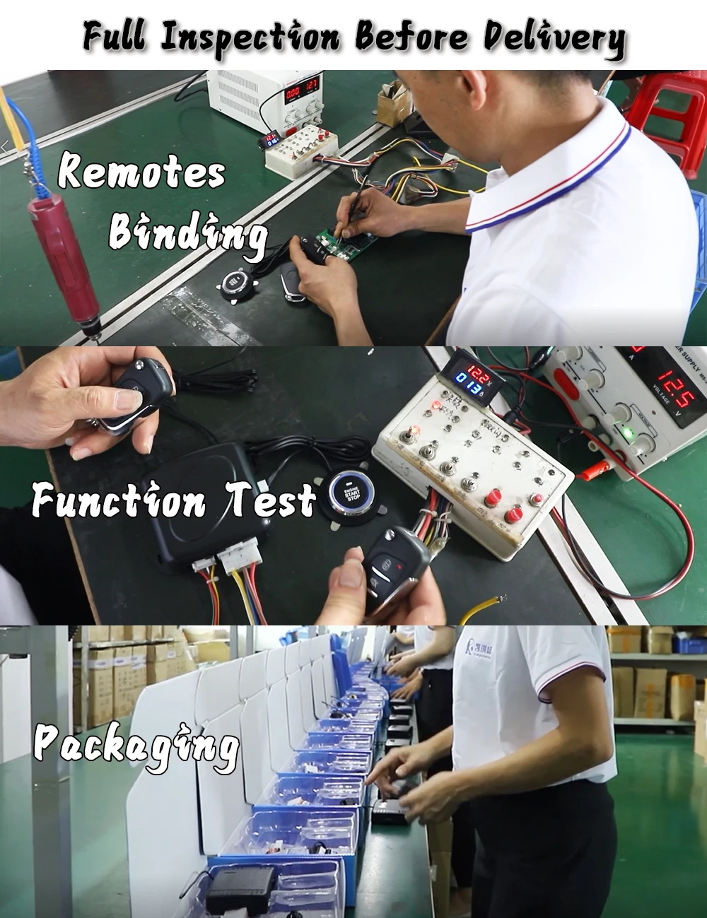 3. Дистанционный запуск двигателя Инструкции: 5.1) В режиме охраны нажмите и удерживайте кнопку дистанционного замка более 5 секунд, сирена раздастся 1 раз, двигатель попытается запуститься. если вы хотите дистанционно остановить двигатель, прошу прощения выше при той же операции. 5.2) Дистанционный запуск двигателя автомобиля, двигатель автомобиля выключится автоматически в течение 10 минут, если вы не отперли дверь автомобиля и не нажали на тормоз. 5.3) Если двигатель работает, он не будет автоматически отключаться, если смарт-ключи находятся вне диапазона индукции антенн pke. это в целях безопасности. 5.4) Если двигатель выключен, смарт-ключ находится вне диапазона индукционной антенны ПКЕ, никто не может запустить и управлять автомобилем без смарт-ключа, это функция распознавания смарт-ключа. 5.5) Не забывайте держать передачу автомобиля в нейтральном положении, если хотите дистанционный запуск! 5.6) Пульт ДУ для подключения черного масляного тракта, если вы хотите дистанционный запуск! Провод масляного тракта имеет положительную мощность, он подается только при запуске, но после остановки двигателя провод масляного тракта не имеет никакой мощности!