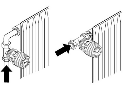 В первую очередь монтируется клапан на радиатор. Для этого перекрывается подача теплоносителя.