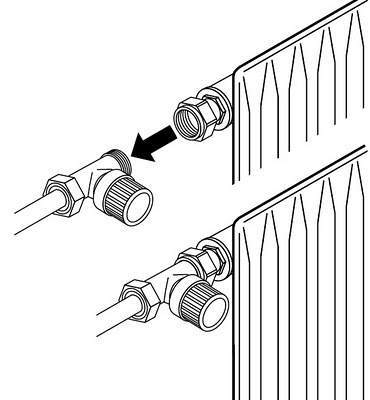 1. После отключения стояка и слива воды из патрубков отопительного прибора отрезать