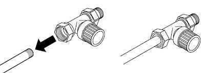 - После того, как клапан установлен на радиатор, с него снимается защитный колпачок (расположен перпендикулярно трубе).