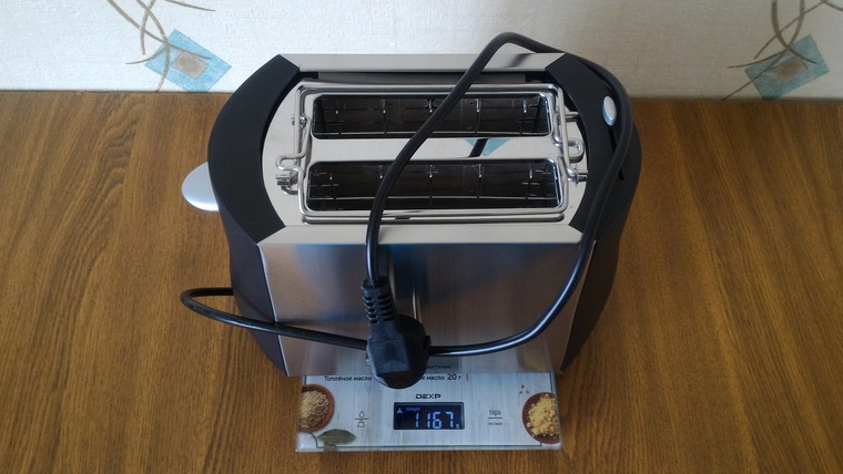 Общий вес тостера вместе сетевым шнуром и вилкой — 1 167 г.