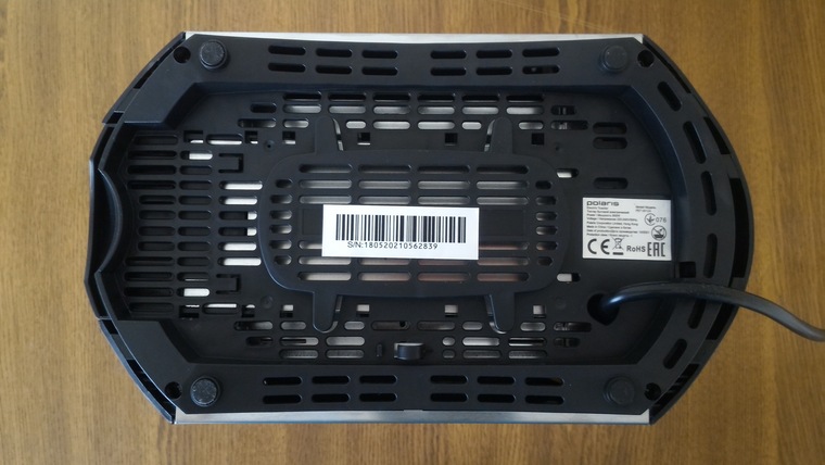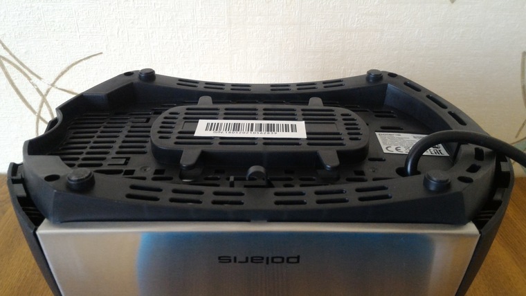 Для лучшей устойчивости тостера его корпус слегка расширяется к основанию. На основании корпуса расположен поддон для сбора крошек, вентиляционные каналы, четыре ножки с резиновыми противоскользящими элементами и фиксатор провода.