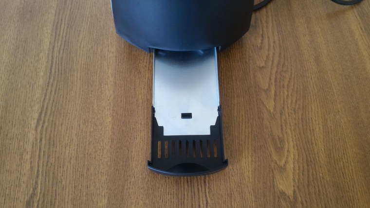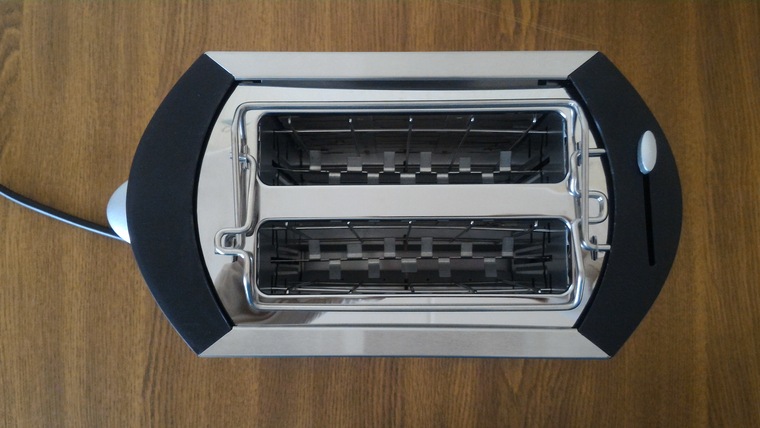Края металла корпуса хорошо обработаны и загнуты, поэтому пользоваться тостером безопасно. Единственный неудобный момент, возникающий при использовании тостера — отпечатки пальцев на металлических боковых поверхностях корпуса, которые появляются после прикосновений. В этой ситуации себя можно приучить не прикасаться к металлическим боковым поверхностям корпуса, а когда нужно подвинуть или переставить тостер, то брать устройство за переднюю и заднюю пластиковые поверхности корпуса.