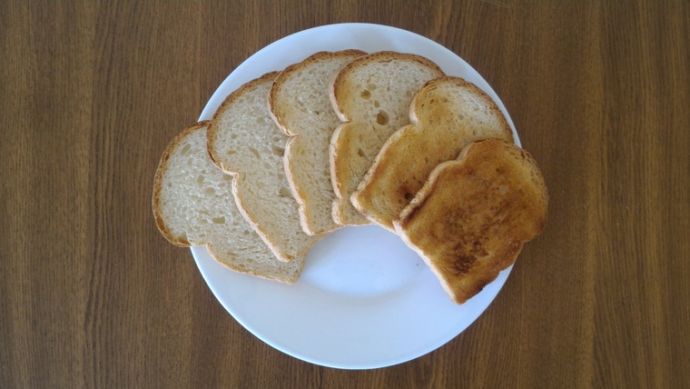По итогам проведенных тестов следует отметить, что в целом тостер равномерно поджаривает ломтики хлеба с двух сторон и при установке регулятора степени поджаривания на максимальное значение тосты не сгорают, т.е. устройство хорошо справляется со своей функцией поджаривания хлеба на всех возможных режимах.