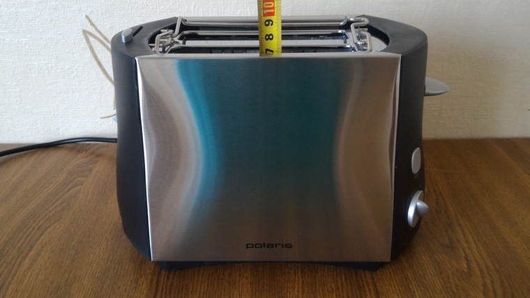 Глубина отверстий для тостов в выключенном состоянии прибора — 7 см, т.е. такая глубина позволяет использовать тостер для поджаривания небольших ломтиков хлеба.