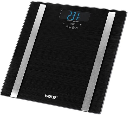 Напольные весы ViTESSE — это не только элегантный и стильный прибор для изменения веса, но и диетологический «компьютер», который вычислит Ваш вес в килограммах или фунтах, определит мышечную и костную массу, а также процентное содержание воды и жира в тканях организма.