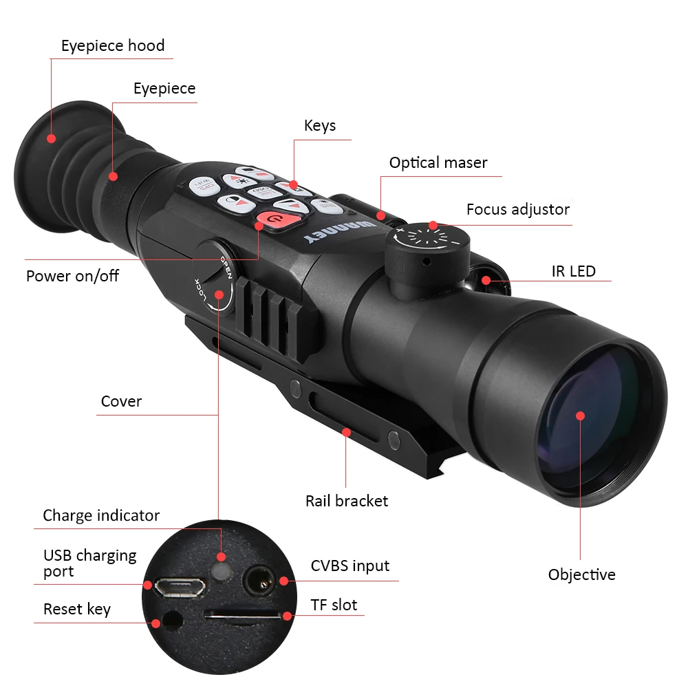 NVDevice можно использовать для наблюдения или охоты в темноте. Он широко используется в отслеживании, разведении, разведке, поиске, патрулировании, спасении, охране границ, расследовании и сборе улик, охоте и других видах спорта на открытом воздухе.