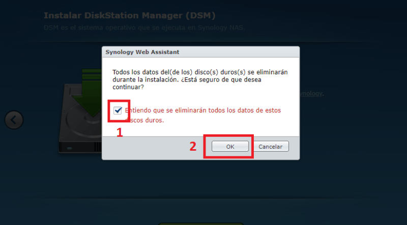 At this point it warns you that the hard disks you have connected will be formatted and all data will be lost.