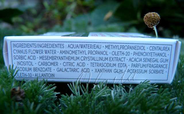 - centaurea cyanus flower water — вода цветков василька или горечавки, обладает противовоспалительными и смягчающими свойствами.